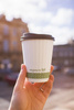 seria zielony pasek z napisem "completely compostable made from plants not plastic", dobrze izoluje ciepło, dzięki swojej budowie nie parzy w dłonie
